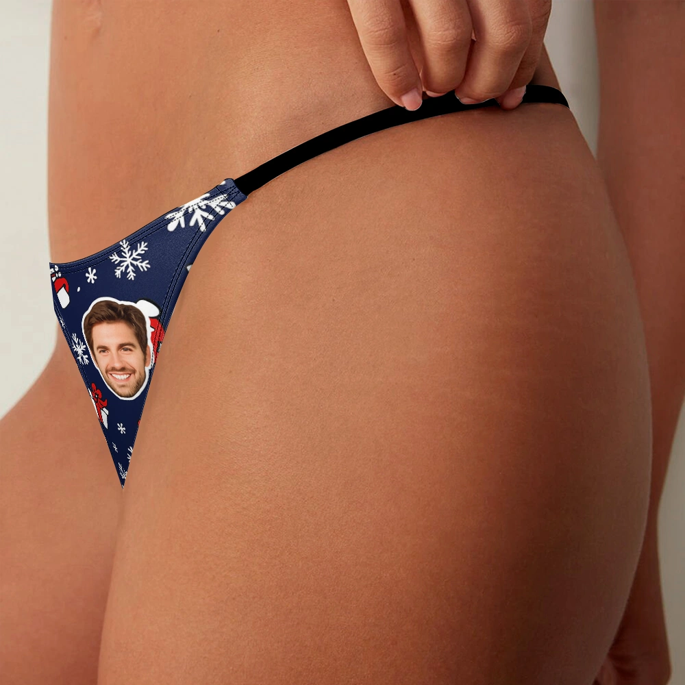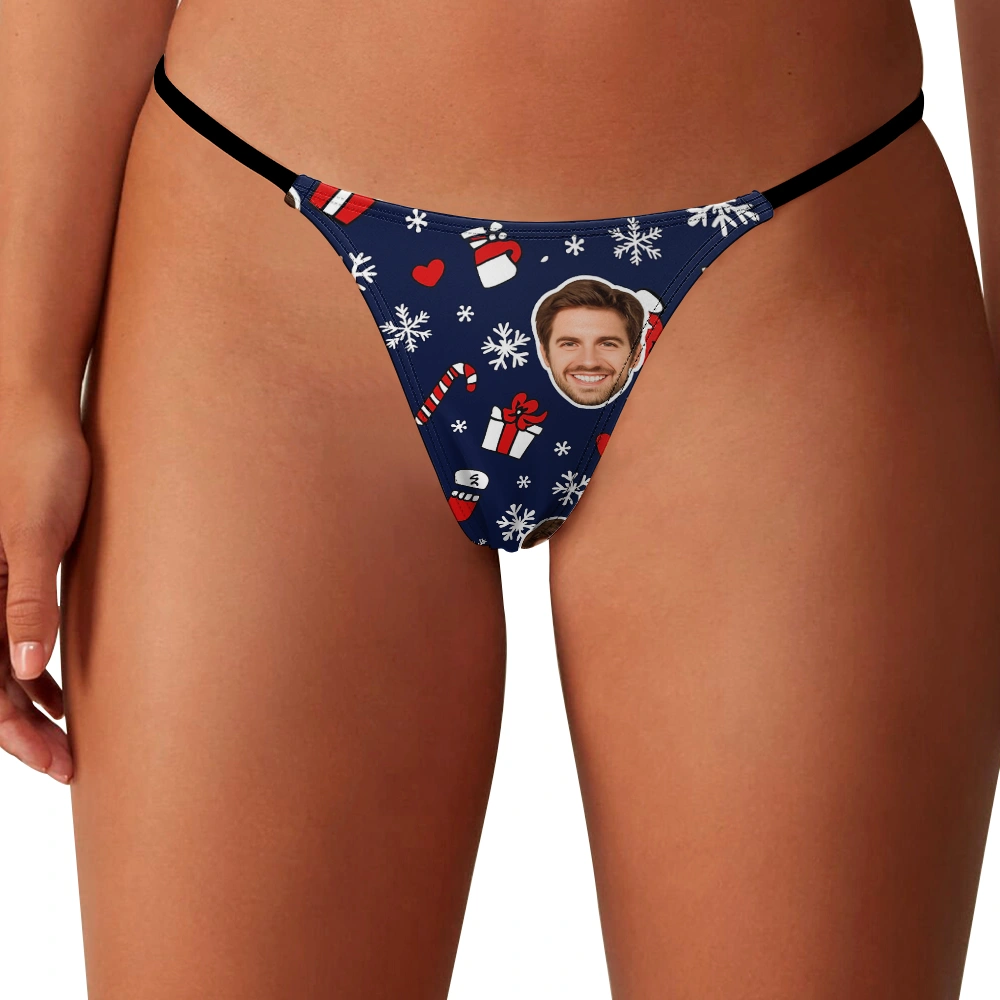 The Custom Face Christmas Thong with Santa Hat and Holiday Icons Design brings festive cheer and personalized fun to your holiday wardrobe. Featuring a playful pattern with your custom face surrounded by cheerful Santa hats, gifts, and holiday icons, this thong is a unique and joyful celebration of the season.